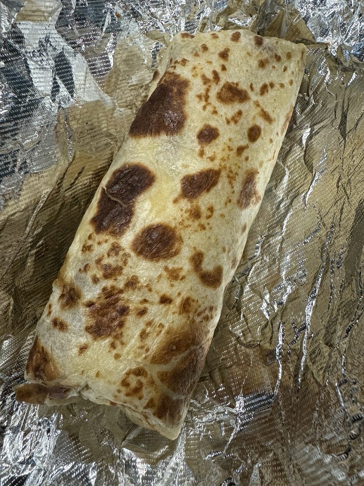 Scrambled egg, potatoes, choice of cheese, pico de gallo and salsa verde medium.